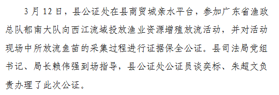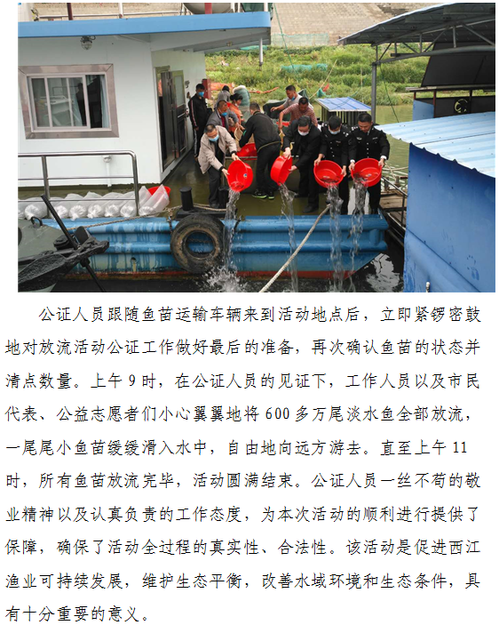 郁南縣公證處為魚苗增殖放流活動提供全程保全證據(jù)公證