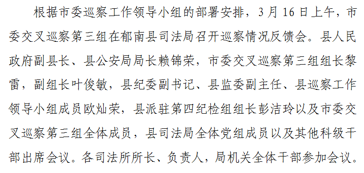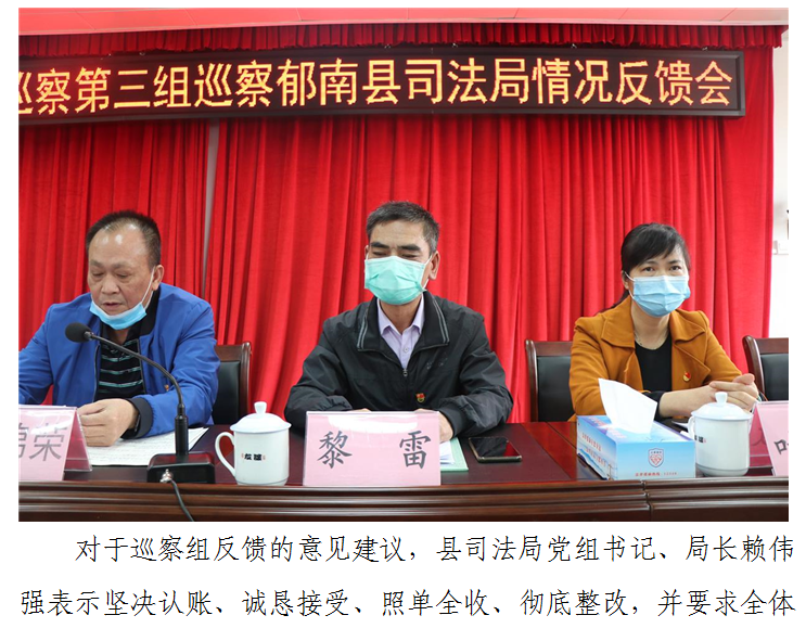 市委交叉巡察第三組在郁南縣司法局召開巡察情況反饋會