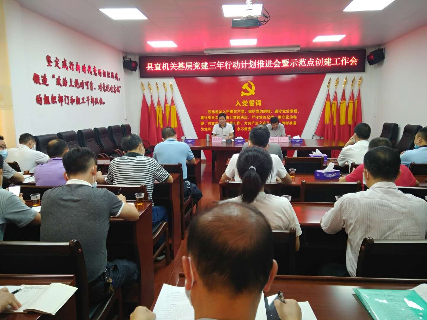 會議傳達貫徹落實全國基層黨建工作重點任務推進會、全省基層黨建三年行動計劃推進會暨組織系統落實常態化疫情防控工作部署會和全市、全縣基層黨建三年行動計劃推進會精神;討論研究縣直機關推進基層黨建三年行動計劃和黨建示范點創建工作。