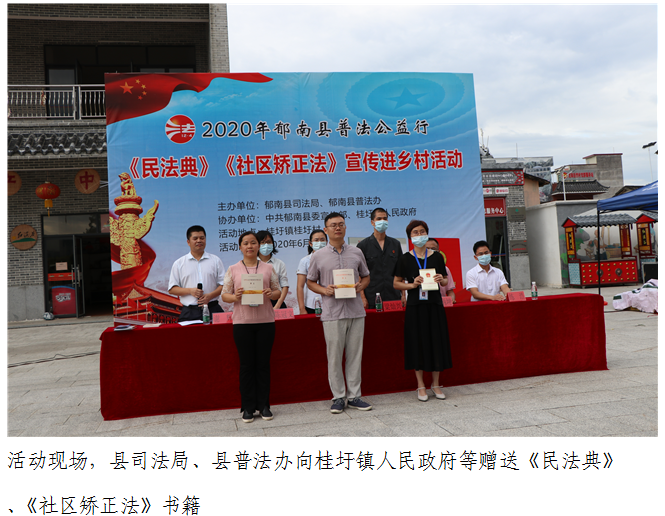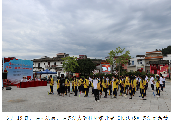 6月19日上午,縣司法局、縣普法辦在桂圩鎮(zhèn)桂圩村委龍崗村,聯(lián)合舉辦主題為“鄉(xiāng)村振興?法治同行”—2020年郁南縣普法公益行之《民法典》《社區(qū)矯正法》宣傳進(jìn)鄉(xiāng)村活動(dòng)。