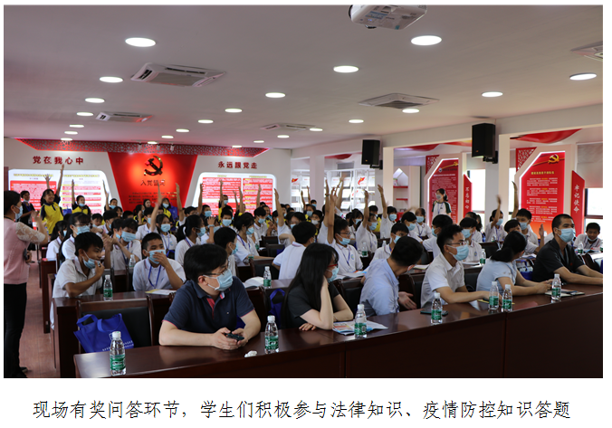 活動(dòng)中,縣司法局黨組成員、副局長(zhǎng)陳冠文代表縣司法局、縣普法辦進(jìn)行了活動(dòng)致詞,有關(guān)領(lǐng)導(dǎo)向桂圩鎮(zhèn)人民政府、桂圩村委和桂圩鎮(zhèn)初級(jí)中學(xué)贈(zèng)送《民法典》《社區(qū)矯正法》書籍若干。活動(dòng)還邀請(qǐng)律師代表向?qū)W生們講解了《民法典》中新增加的各類法律條文,以通俗易懂的案例向大家解釋如職場(chǎng)/校園性騷擾、侵權(quán)責(zé)任中的高空拋物、網(wǎng)店等虛擬財(cái)產(chǎn)繼承以及見義勇為免責(zé)等與群眾日常生活息息相關(guān)的條文。在專題培訓(xùn)班后,進(jìn)行了現(xiàn)場(chǎng)有獎(jiǎng)問(wèn)答活動(dòng),通過(guò)對(duì)《民法典》、《社區(qū)矯正法》、疫情防控、禁毒知識(shí)等進(jìn)行問(wèn)答,現(xiàn)場(chǎng)學(xué)生們踴躍參與答題,以寓教于樂(lè)的方式提升學(xué)生們的法律知識(shí)水平和疫情防控能力。