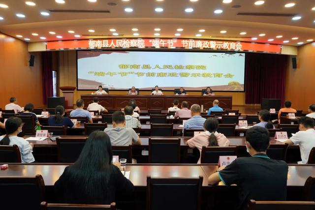 端午節將至,為了持續深入做好黨風廉政建設和疫情防控工作,2020年6月24日上午,郁南縣檢察院召開“端午節”節前警示教育會,全院干警參加了會議。