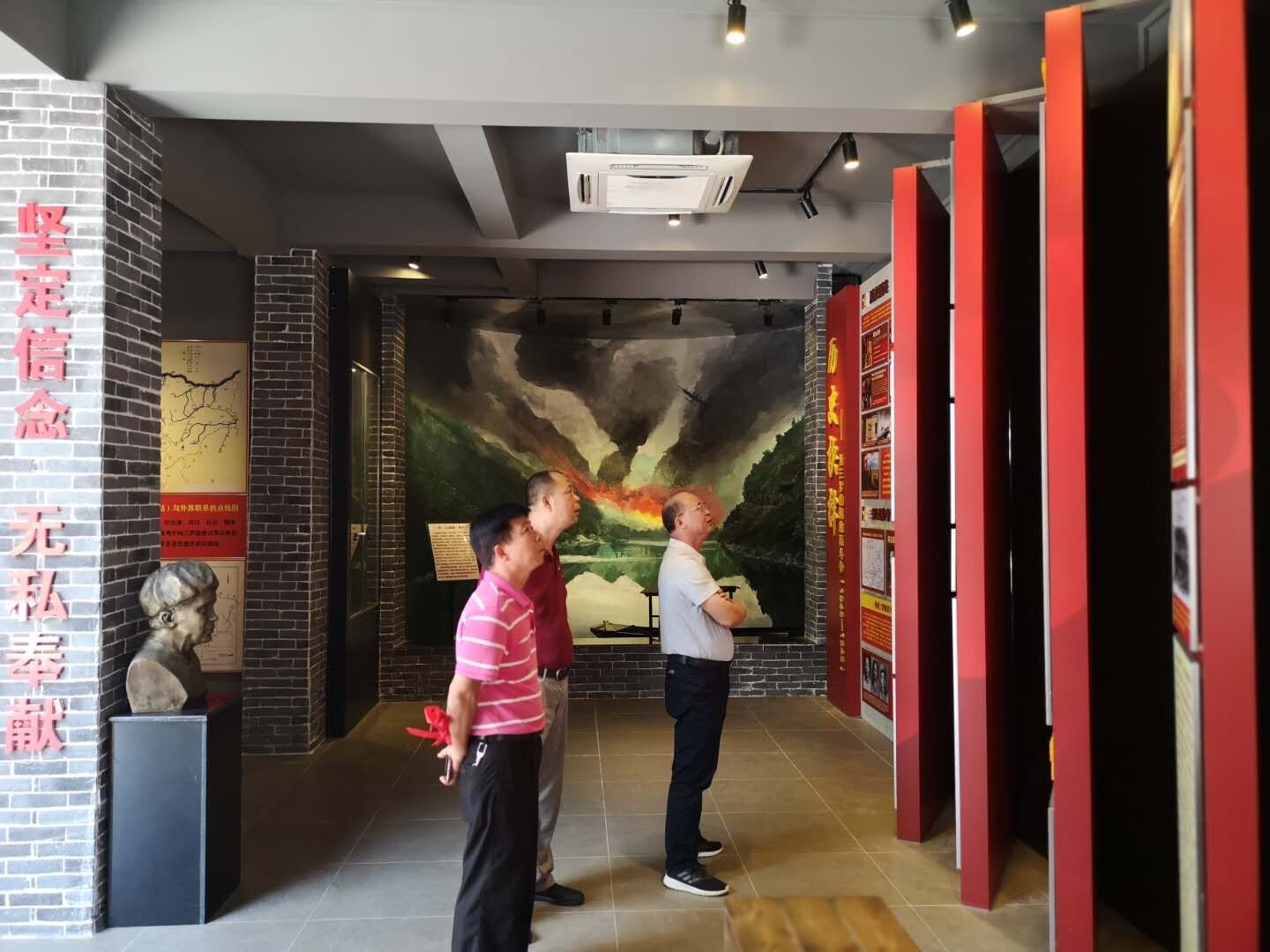 同志們先后到河口寨紅色廣場和中共三羅邊區(qū)(郁南河口)交通總站革命紀(jì)念館等地參觀,平整潔凈的村道,綠草如茵、花團(tuán)錦簇,讓人眼前一亮。處于郁蔥果樹園間的紀(jì)念館已經(jīng)修繕一新,里面陳列了相關(guān)紅色歷史和領(lǐng)導(dǎo)人的雕像、蠟像,還有戰(zhàn)鑼、戰(zhàn)鼓等紅色紀(jì)念意義的物品,墻上是一幅幅歷史事跡介紹,詳細(xì)地記載了相關(guān)歷史和重要人物的事跡。