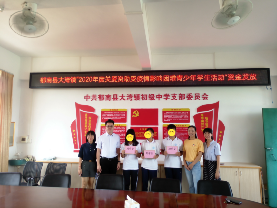 團縣委一行還到大灣鎮初級中學看望慰問了受疫情影響的困難學生,勉勵他們要積極面對困難,樂觀生活、自強不息、好好學習,并向他們轉交了團市委下發的慰問金。