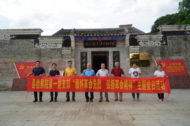 郁南縣檢察院第一黨支部到革命根據地郁南縣桂圩鎮龍崗村開展“緬懷革命先烈,弘揚革命精神”主題黨日活動,聽黨史,溫誓詞。