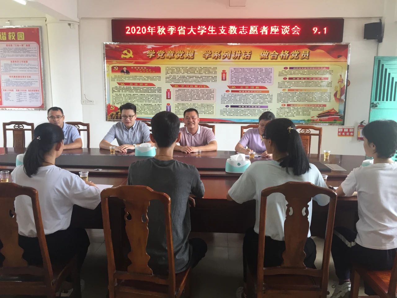 9月1日,團郁南縣委調研組到平臺鎮中心小學調研希望鄉村教師計劃項目開展情況,并看望慰問一線支教志愿者。?