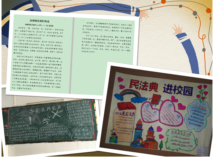 全縣各校以黑板報、手抄報等形式開展“憲法在我心中,法律伴我成長”征文比賽,學生們積極響應,本次活動各校共收集參賽作品300多份。與此同時,一幅幅憲法學習黑板報在校園雨后春筍般呈現出來,一張張法治教育手抄報不約而同地擺放到老師桌面,一遍遍法律感想征文不斷涌現在師生眼前……學生們通過參加一系列征文比賽活動,以寓樂于教的方式讓憲法走進學生身邊,走進學生心里。