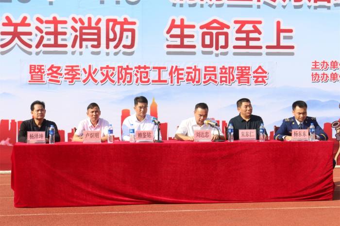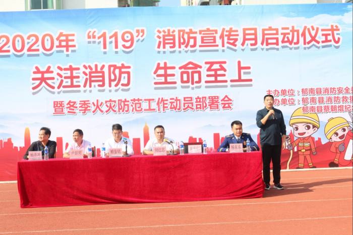 11月9日上午,郁南縣2020年“119”消防宣傳月活動啟動儀式暨冬季火災防范工作動員部署會在縣蔡朝焜紀念中學舉行。縣委常委、常務副縣長賴鑒銘,縣府辦四級調研員劉達忠、各鎮分管領導、消安委成員單位負責同志以及蔡朝焜紀念中學校級領導,七、八年級和高一級1500多名師生參加了活動。啟動儀式和部署會由縣府辦四級調研員劉達忠主持。 上午九點,蔡朝焜紀念中學七、八年級和高一級1500多名學生在宿舍區進行了消防演練。接著,郁南縣消防救援大隊政治輔導員楊東東宣讀了郁南縣2020年“119”消防宣傳月活動方案,他指出,11月是全國“119”消防宣傳月,根據《應急管理部消防救援局關于開展2020年度“119”消防宣傳月活動的通知》要求,為切實發動社會各界進一步關注消防、學習消防、參與消防,提升全民消防安全素質,夯實火災防控基礎,結合全縣消防安全宣傳工作實際,11月份在全縣開展“119”消防宣傳月活動。具體活動內容有:舉辦啟動儀式、開展疏散演練活動、開展宣傳行動等。縣教育局副局長朱東仁對學生消防演練進行了點評,指出了不足之處。 然后,縣委常委、常務副縣長賴鑒銘致辭,他強調:一要深刻認識新時期消防工作的重要性;二是要縱深推進冬春火災防控各項措施;三是要全面落實消防安全責任。他說,消防安全關乎千家萬戶,維護消防安全是我們每一個人的責任。今天,讓我們共同開啟2020年“119”消防宣傳月的序幕,大家要共同行動起來。在全縣范圍內掀起“關注消防,生命至上”的新熱潮,形成“全民參與,防治火災”的良好局面,有效預防和減少火災事故發生,維護廣大人民群眾生命財產安全,為建設平安郁南、幸福郁南創造安全穩定的消防環境。