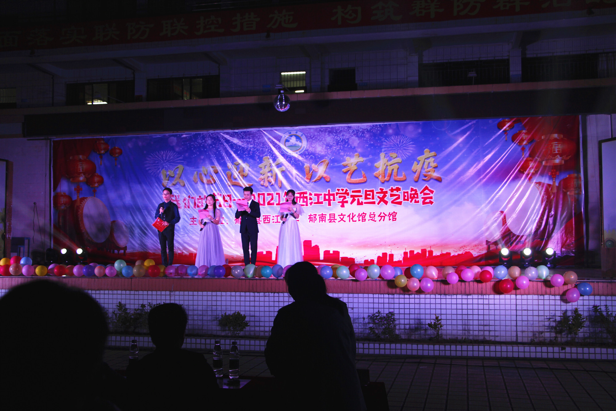 為迎接2021年新年到來,12月29日晚,郁南縣文化館總分館與郁南縣西江中學聯合舉辦“以心迎新 以藝抗疫”元旦文藝晚會。活動當晚,縣西江中學校長劉興華、黨總支書記黃燕凝等校領導及縣文化館館長譚韻、副館長謝意等與全校師生歡聚一堂,共同享受這一精彩紛呈的節日文化大餐。