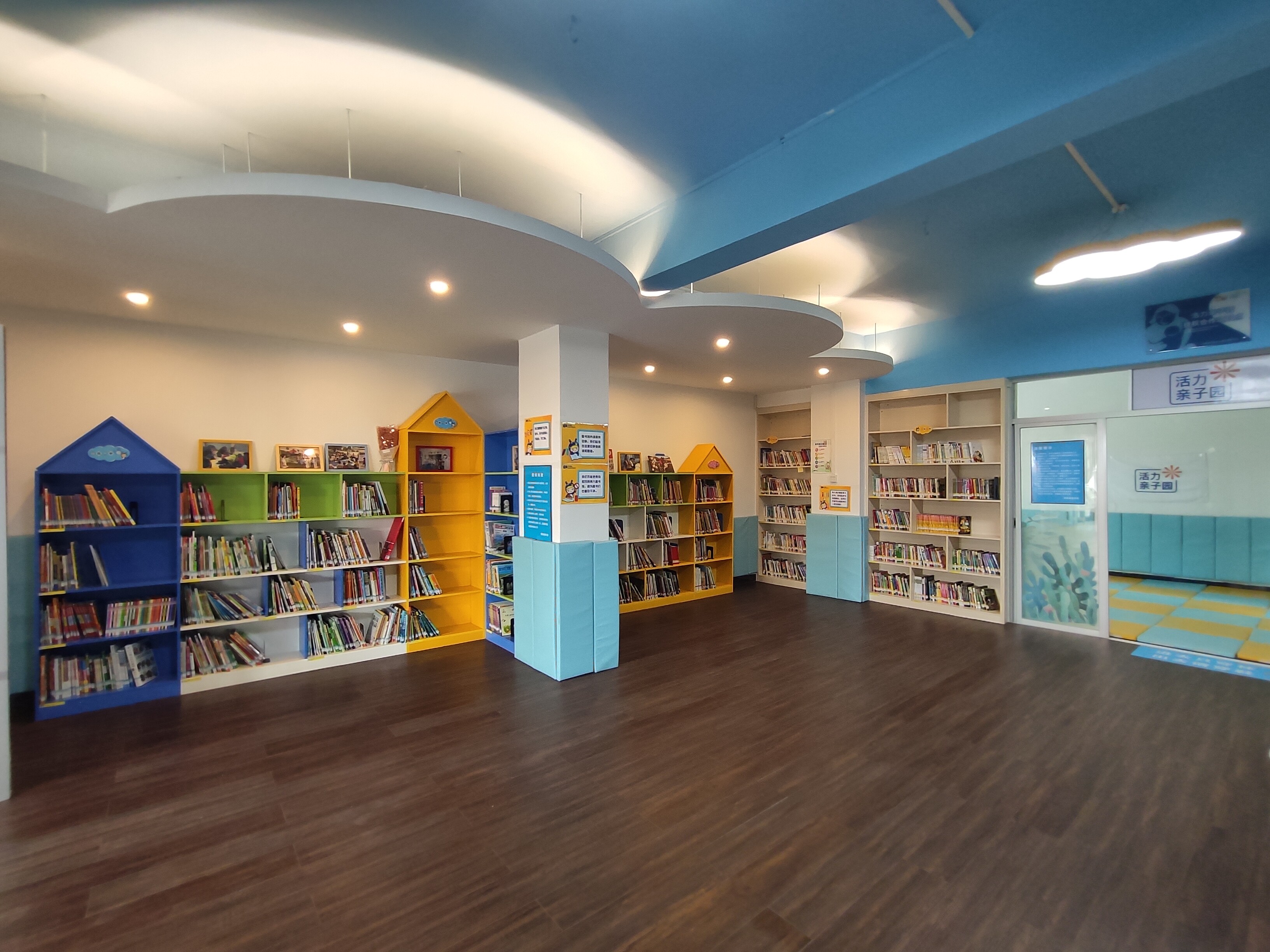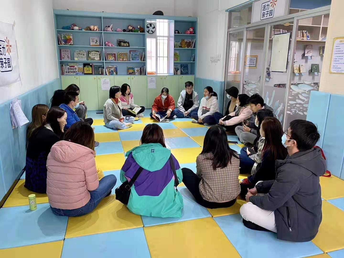 滿天星公益機構月捐人給少兒室親子園里的小孩閱讀繪本。