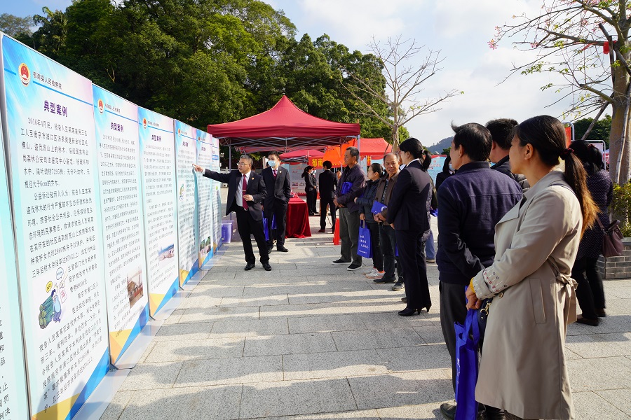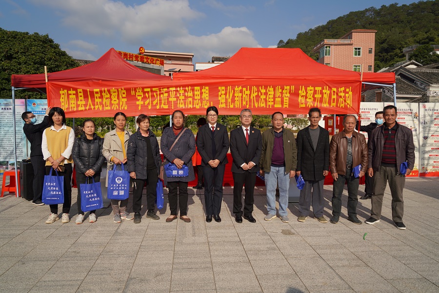 為深入學習貫徹習近平法治思想,弘揚憲法精神,加強新時代法律監督工作,12月3日,郁南縣檢察院舉行“學習習近平法治思想,強化新時代法律監督”檢察開放日活動,首次以走進鎮村形式開展豐富多彩的普法宣傳活動。當地人大代表、教師學生、群眾等200多人現場參與。