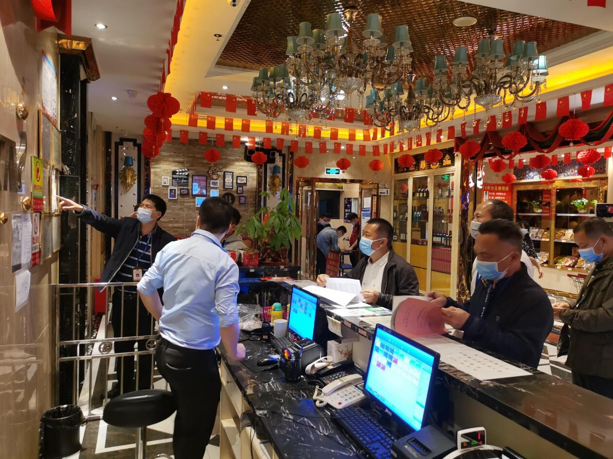 檢查組強調,春節期間文化娛樂經營場所人流量加大,必須全力以赴抓好疫情防控、安全生產各項工作。一是要堅持疫情常態化管控工作絕不能放松,文化娛樂經營場所日常消毒工作、包間人數限制措施要確保執行到位;二是要落實對進場消費的人員開展測溫、實名登記、掃粵康碼等措施;三是要認真執行消防安全等相關制度,經營場所的應急燈、消防安全通道、滅火器擺放等一定要符合規范,確保文化娛樂市場健康有序,為人民群眾營造健康、安全、文明、祥和的節日文化氛圍。