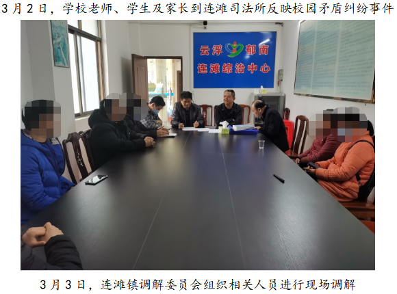 3月3日,由連灘司法所、連灘派出所、連灘鎮(zhèn)綜治辦組成的調(diào)解工作小組,成功化解一宗因?qū)W生之間玩耍追逐出現(xiàn)跌傷的校園糾紛。