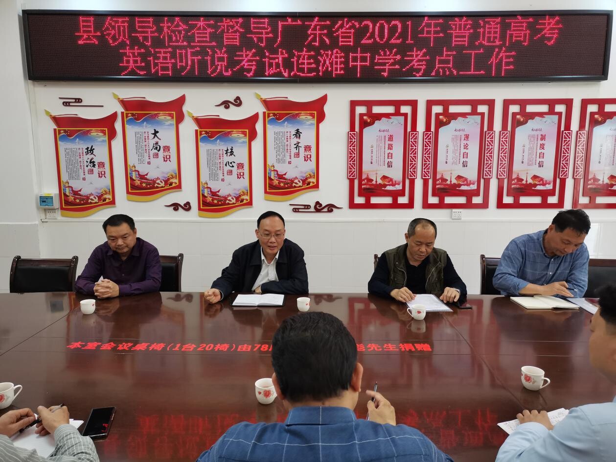 3月12日下午,郁南縣副縣長譚樹才在縣府辦、教育局有關(guān)部門人員的陪同下,蒞臨連灘中學(xué)考點督查高考英語聽說考試考務(wù)準備工作情況。