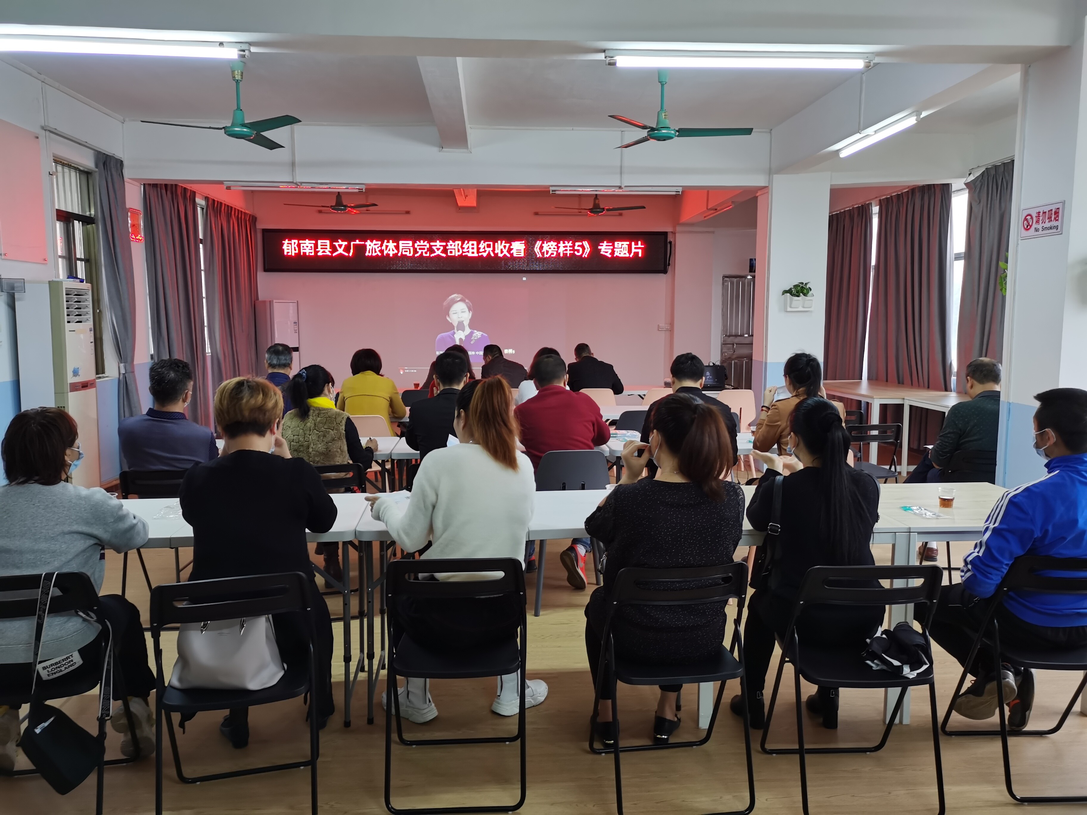 3月26日上午,郁南縣文廣旅體局直屬機關黨委組織收看《榜樣5》專題片。郁南縣文廣旅體局直屬機關黨委在職黨員60多人觀看了專題片。
