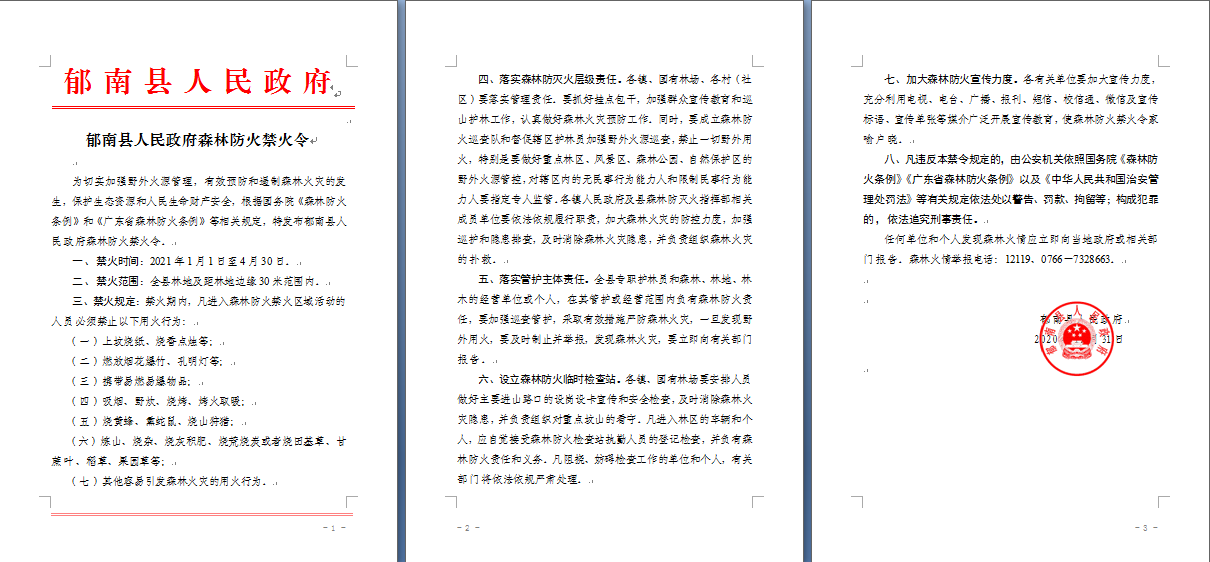 ▲郁南縣發布《郁南縣人民政府森林防火禁火令》