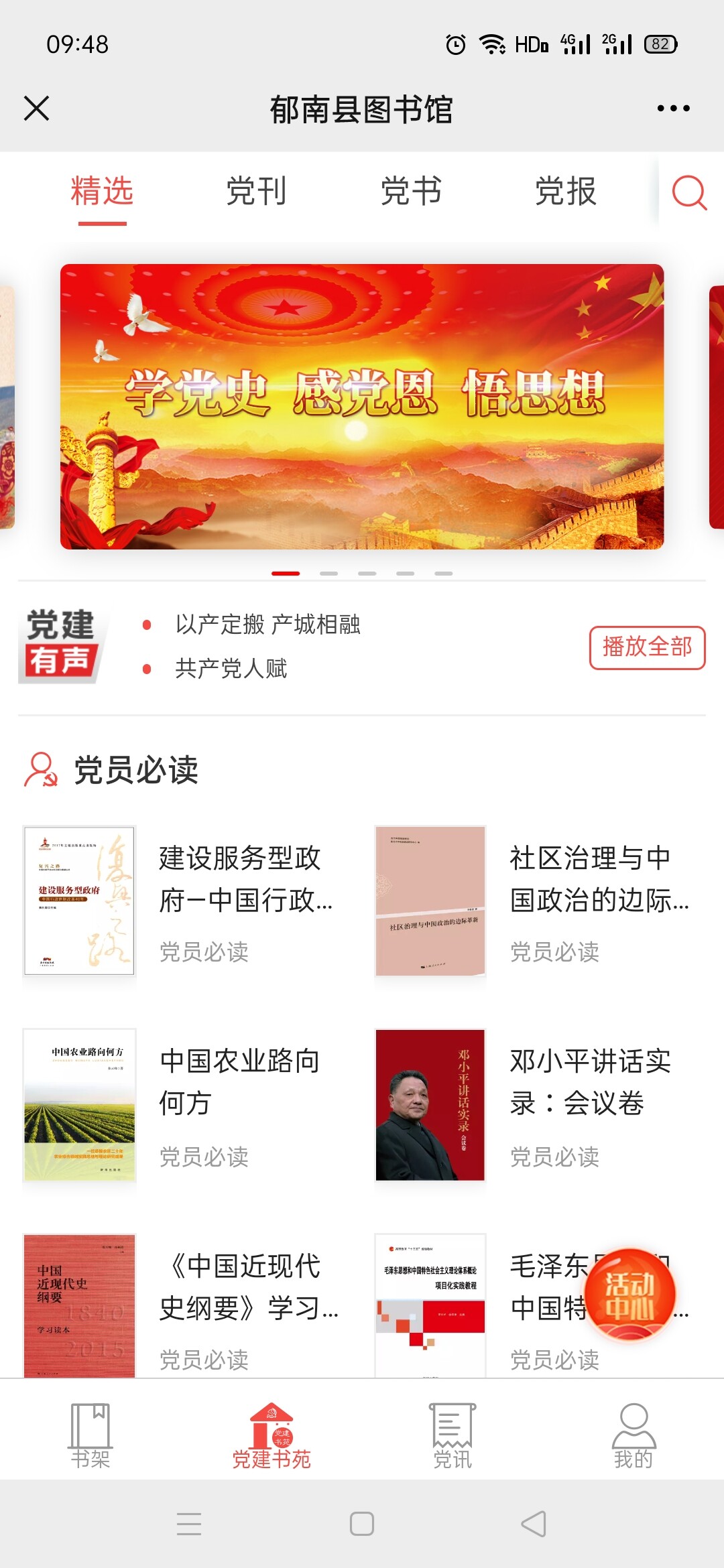 此外,縣圖書館在館內五樓設立“紅色書吧”,分類陳列著黨史、長征系列、紅軍故事、革命名人等各類書籍,為廣大讀者提供黨史學習的陣地。