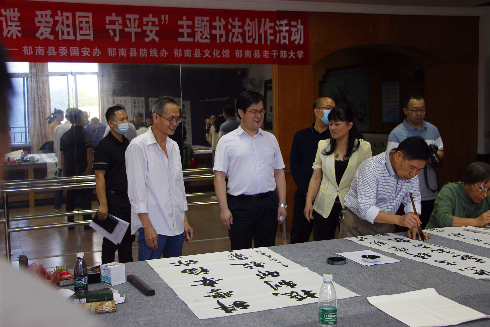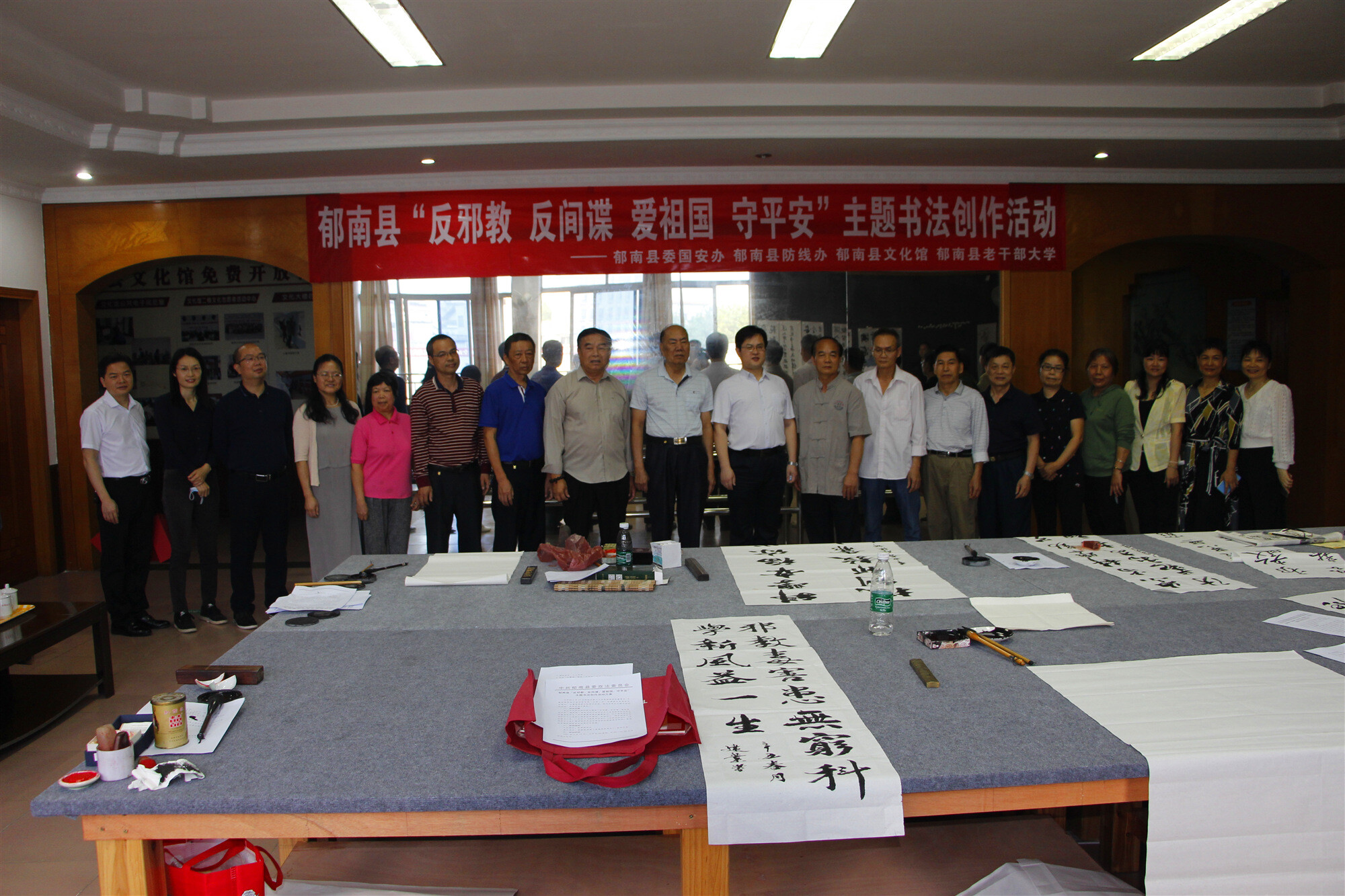 2021年4月15日是第六個全民國家安全教育日,為推動國家安全宣傳教育深入開展,進一步增強全民國家安全意識,豐富群眾的文化生活,由郁南縣委國安辦、郁南縣防線辦、郁南縣文化館、郁南縣老干部大學聯合舉辦的“反邪教 反間諜 愛祖國 守平安”主題書法創作活動在郁南縣文化館三樓書畫活動室舉行,中共郁南縣委副書記、縣委政法委書記姚家耕同志出席活動,縣直相關部門人員、退休黨員干部職工近30人參加。活動參與人員圍繞“反邪教 反間諜 愛祖國 守平安”的主題即席揮毫,創作出不同的書體和風格的書法作品。