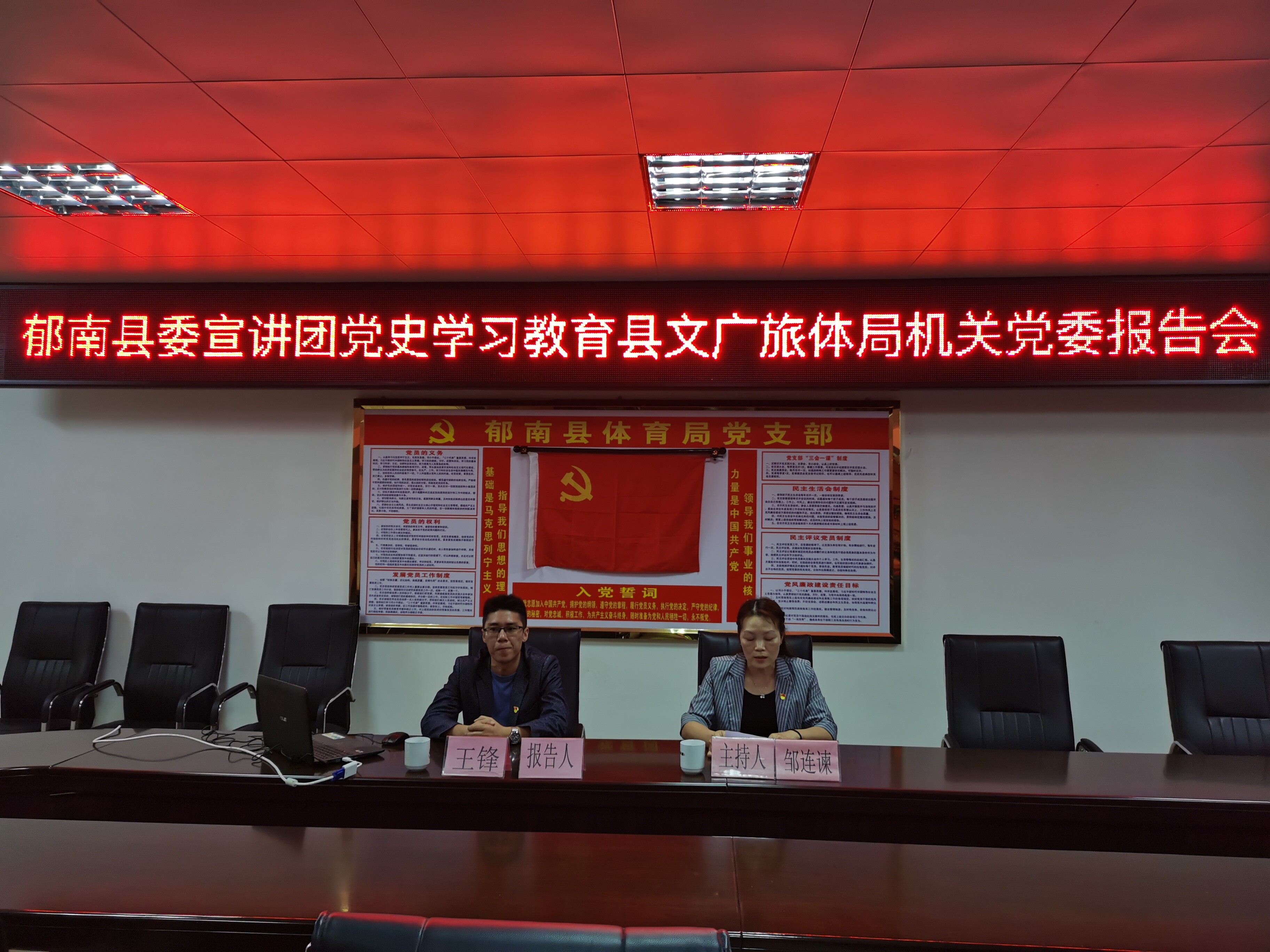 4月21日上午,郁南縣文化廣電旅游體育局直屬機(jī)關(guān)黨委舉辦郁南縣委宣講團(tuán)黨史學(xué)習(xí)教育報告會。郁南縣文化廣電旅游體育局黨支部、郁南縣體育局黨支部、郁南縣旅游局黨支部、郁南縣融媒體中心全體在職黨員參加了報告會。郁南縣委黨史宣講團(tuán)成員、縣西江中學(xué)教師王鋒同志作宣講報告。郁南縣文化廣電旅游體育局直屬機(jī)關(guān)黨委副書記鄒連諫同志主持會議。