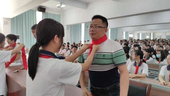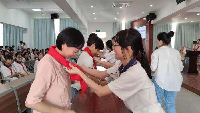 隊員們為領導、嘉賓佩戴紅領巾,一起感受這莊嚴的時刻。