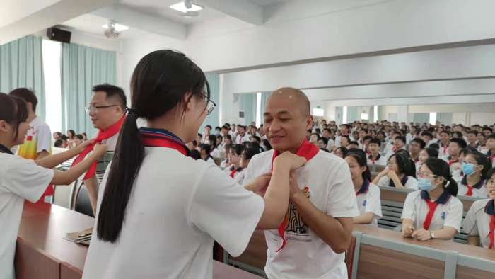 5月24日下午,一場盛大的青春典禮——蔡朝焜紀念中學少先隊離隊、入團儀式暨14歲集體生日在學校演播廳隆重。