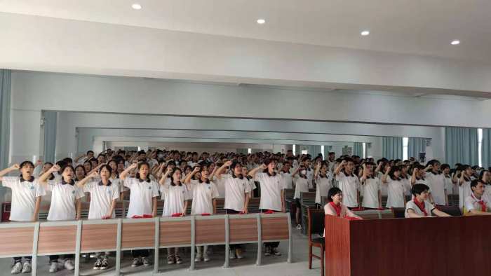 新團員們在蔡朝焜紀念中學第三期團校培訓班班主任聶嬌麗老師的帶領下,以最洪亮的聲音、最飽滿的精神狀態莊嚴宣誓,表達了為共產主義事業而奮斗的心聲。51名同學光榮地加入了中國共產主義青年團。
