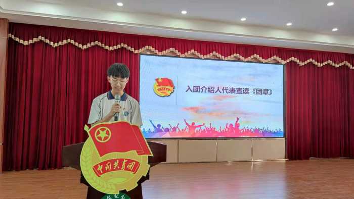 入團介紹人陳向榮向新團員宣讀了《團章》,明確了新團員的義務和責任;老團員代表陳偉怡表達了加入共青團后,自己生活和學習上的積極變化;新團員代表袁慶南表達了在以后會嚴格要求自己,做一名優秀的共青團員。