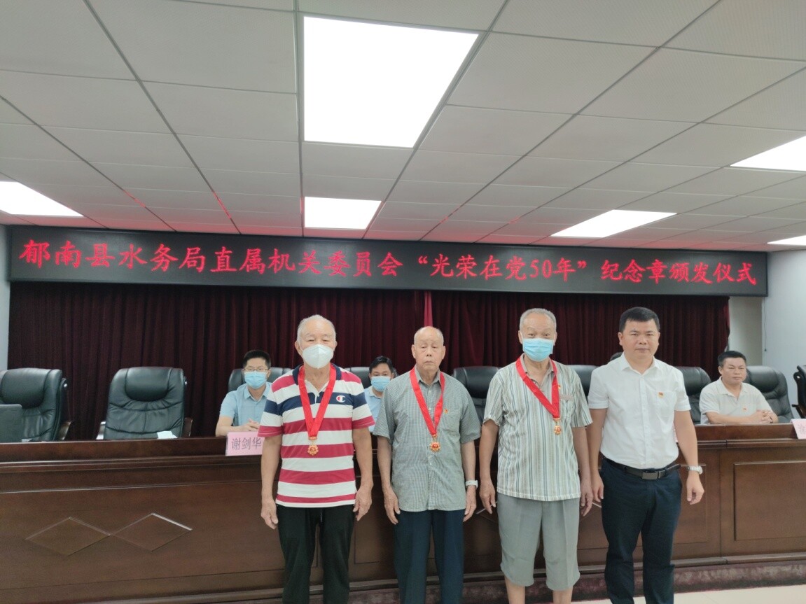 百年征程波瀾壯闊,五十余載初心不改。6月28日上午,郁南縣水務局舉行“光榮在黨50年”紀念章頒發儀式,向3名老黨員代表頒發紀念章,并向他們致以崇高敬意和誠摯問候。據統計,水務系統共有“光榮在黨50年”老黨員16人,他們初心不改,始終保持著對黨的忠誠和對水利的熱愛。