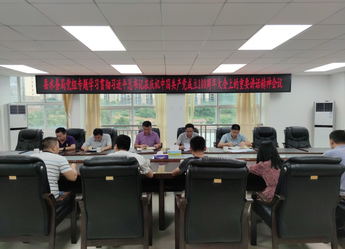 7月6日上午,縣水務局召開黨組(擴大)會議,深入學習貫徹習近平總書記在慶祝中國共產黨成立100周年大會上的重要講話精神,研究貫徹落實舉措。局黨組成員、黨史辦和各股室負責人參加了會議。