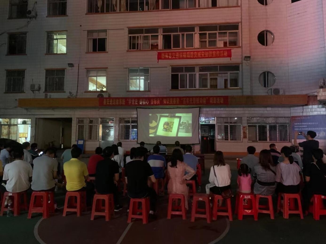 為慶祝中國(guó)共產(chǎn)黨成立100周年,回顧黨的光輝歷程,謳歌黨的豐功偉績(jī),貫徹習(xí)近平總書記在黨史學(xué)習(xí)教育動(dòng)員大會(huì)上的講話精神,推動(dòng)黨史學(xué)習(xí)教育深入開(kāi)展,做到“學(xué)黨史、悟思想、辦實(shí)事、開(kāi)新局”,5月6日晚上8時(shí),郁南縣交通運(yùn)輸局組織交通運(yùn)輸系統(tǒng)全體干部職工及黨員在局機(jī)關(guān)大院籃球場(chǎng)舉辦“學(xué)黨史 鑄初心 當(dāng)標(biāo)兵”知識(shí)競(jìng)賽暨“百年光影賦動(dòng)能”觀影活動(dòng)?;顒?dòng)把黨史知識(shí)競(jìng)賽與愛(ài)國(guó)電影觀影活動(dòng)相結(jié)合,在觀影前及觀影過(guò)程加插知識(shí)競(jìng)賽環(huán)節(jié)?,F(xiàn)場(chǎng)約九十名黨員參加。