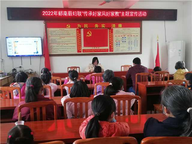 活動以宣傳、座談、入戶走訪三種形式開展。會上,縣婦聯負責人以通俗易懂的語言,從好家風的定義、古今著名好家風人物、家庭案例等方面,詳細地闡述了家風的傳承、家訓的作用和家教的意義,讓大家充分認識良好的家風和家教對形成良好社會風氣的重要性,將中國傳統文化的精髓與道德禮儀深刻地傳遞出去。隨后,與會人員通過座談方式共同探討如何成為好家長、好伴侶、好子女、好鄰里,以及如何言傳身教培養孩子,傳承好家風。最后,縣婦聯一行還進村入戶進行“傳承好家風好家教”宣傳,受宣傳的群眾紛紛表示贊同此次宣傳活動,并認為要多形式、多開展家風家教類活動。