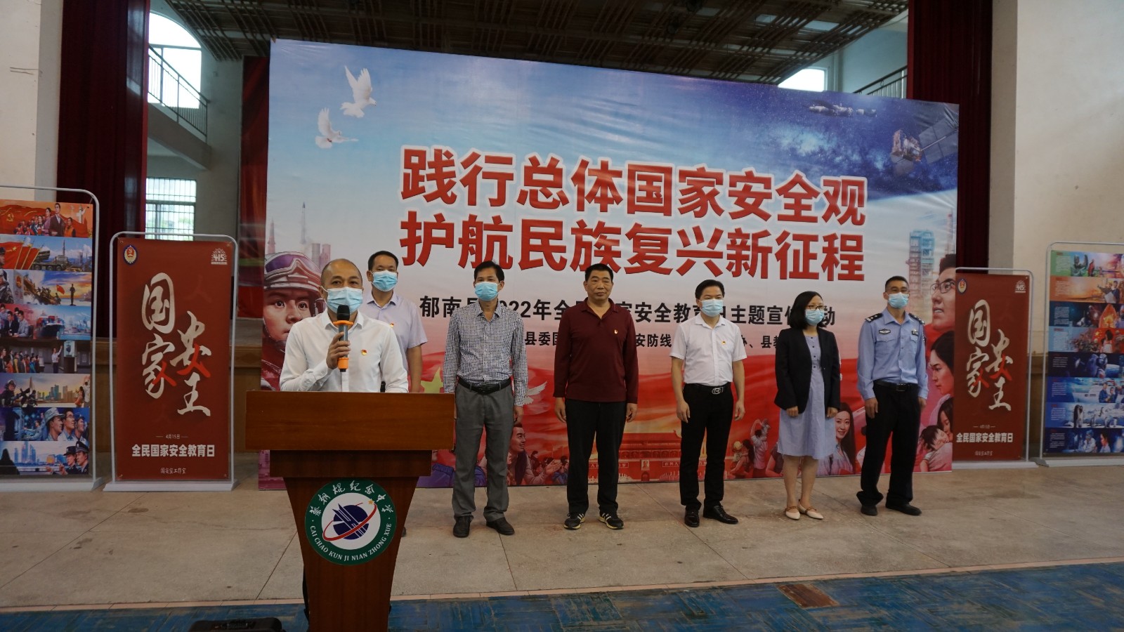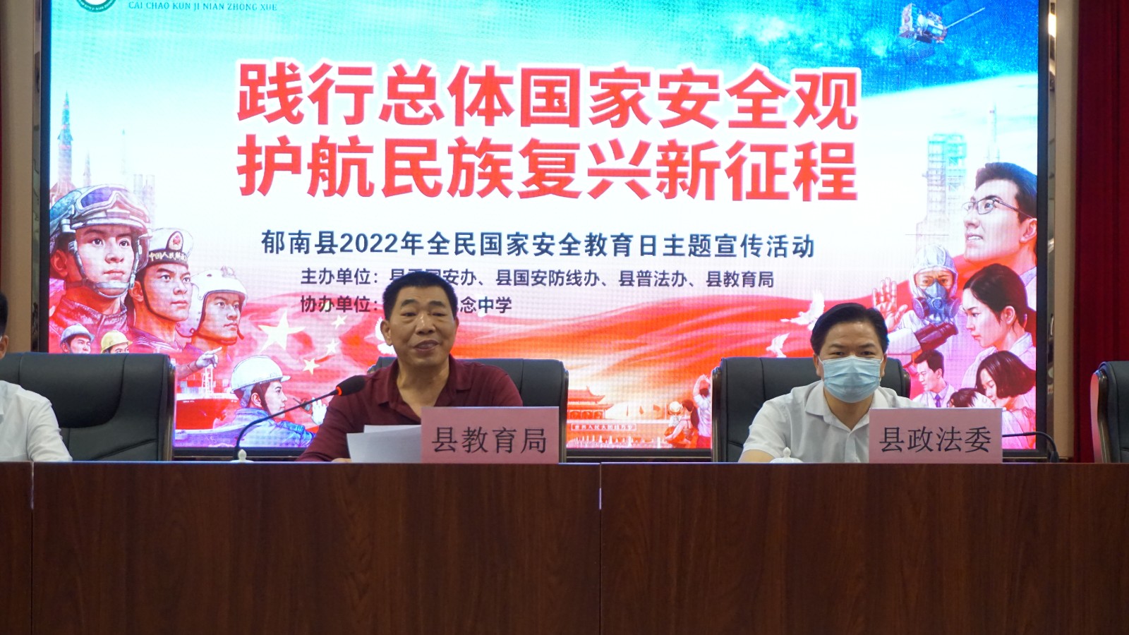 2022年4月15日,是第七個全民國家安全教育日,在第七個全民國家安全教育日來臨之際,為加強對國家安全的宣傳教育,提升青少年學生的國家安全意識,營造良好的自覺履行維護國家安全責任義務和教育的氛圍,4月13日上午,由縣委國安辦、縣國安防線辦、縣普法辦、縣教育局聯(lián)合主辦的郁南縣2022年全民國家安全教育日主題宣傳活動在蔡朝焜紀念中學舉行。縣委政法委、縣公安局、縣司法局、縣教育局有關領導出席了此次活動。活動由學校副校長陳演年主持。
