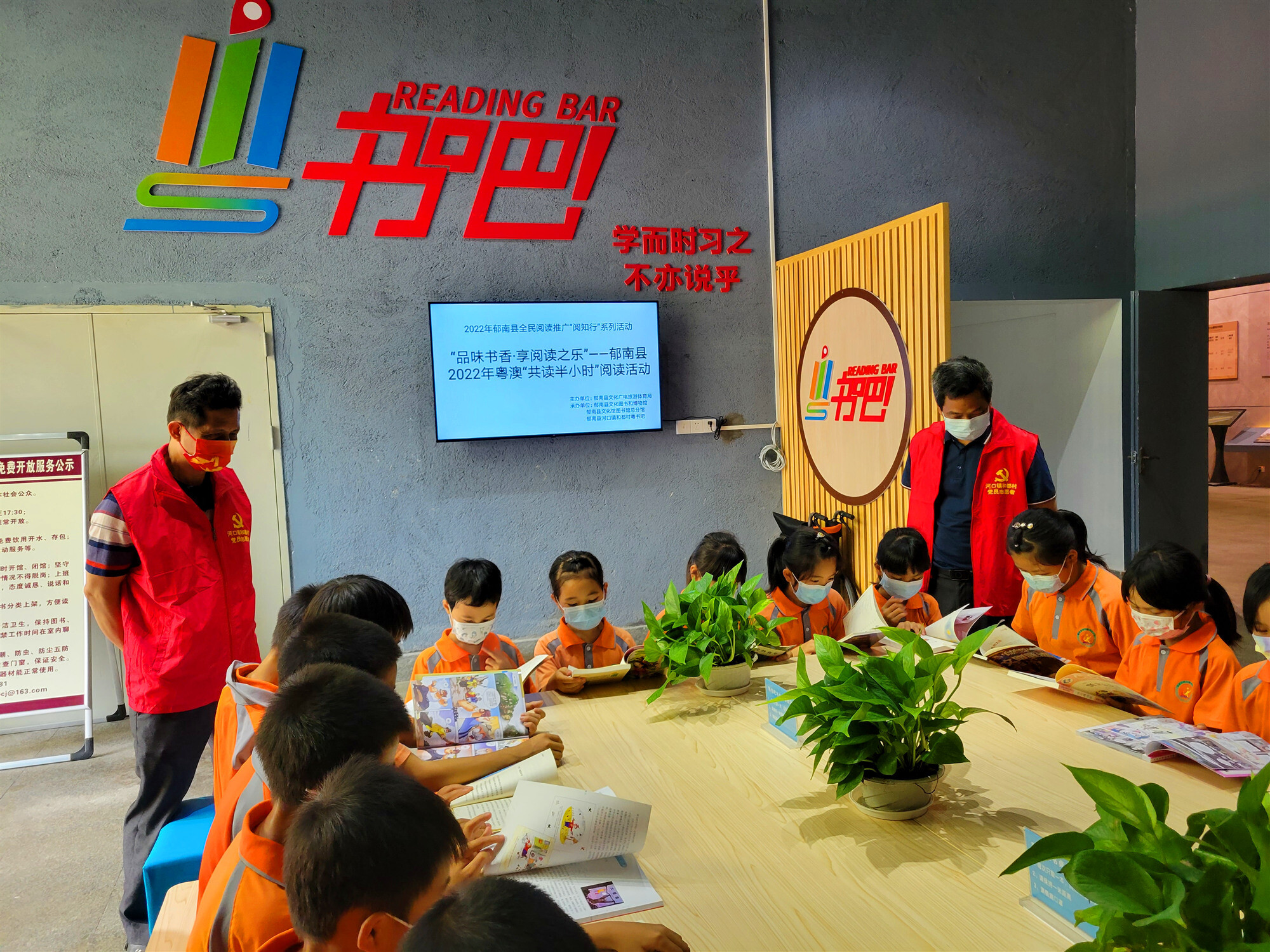 為迎接黨的二十大,充分發揮圖書館作為文化傳播主力軍的作用,推動全民閱讀深入開展,4月23日,郁南縣文化圖書和博物館分別在縣圖書館總館、縣文化館圖書館連灘鎮分館、河口鎮和都村粵書吧設置了3個共讀點,共同舉辦“品味書香·享閱讀之樂”——2022粵澳“共讀半小時”閱讀活動,活動共有100余人參加。