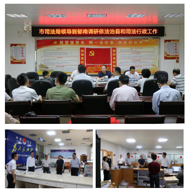 在縣司法局機關,調研組先后到各服務大廳、各業務股室進行實地調研,在陪同人員介紹下,每到一處均駐足詳細了解司法行政工作,主動詢問日常業務開展情況,認真聽取我縣依法治縣、法律援助、社區矯正、公證服務、法律顧問等工作落實情況。隨后,在局機關三樓會議室召開工作座談會,王朝輝、賴偉強分別就近期我縣司法行政工作開展落實情況進行匯報,重點圍繞依法治縣、重大項目法治護航、疫情防控、法律服務工作等進行報告。