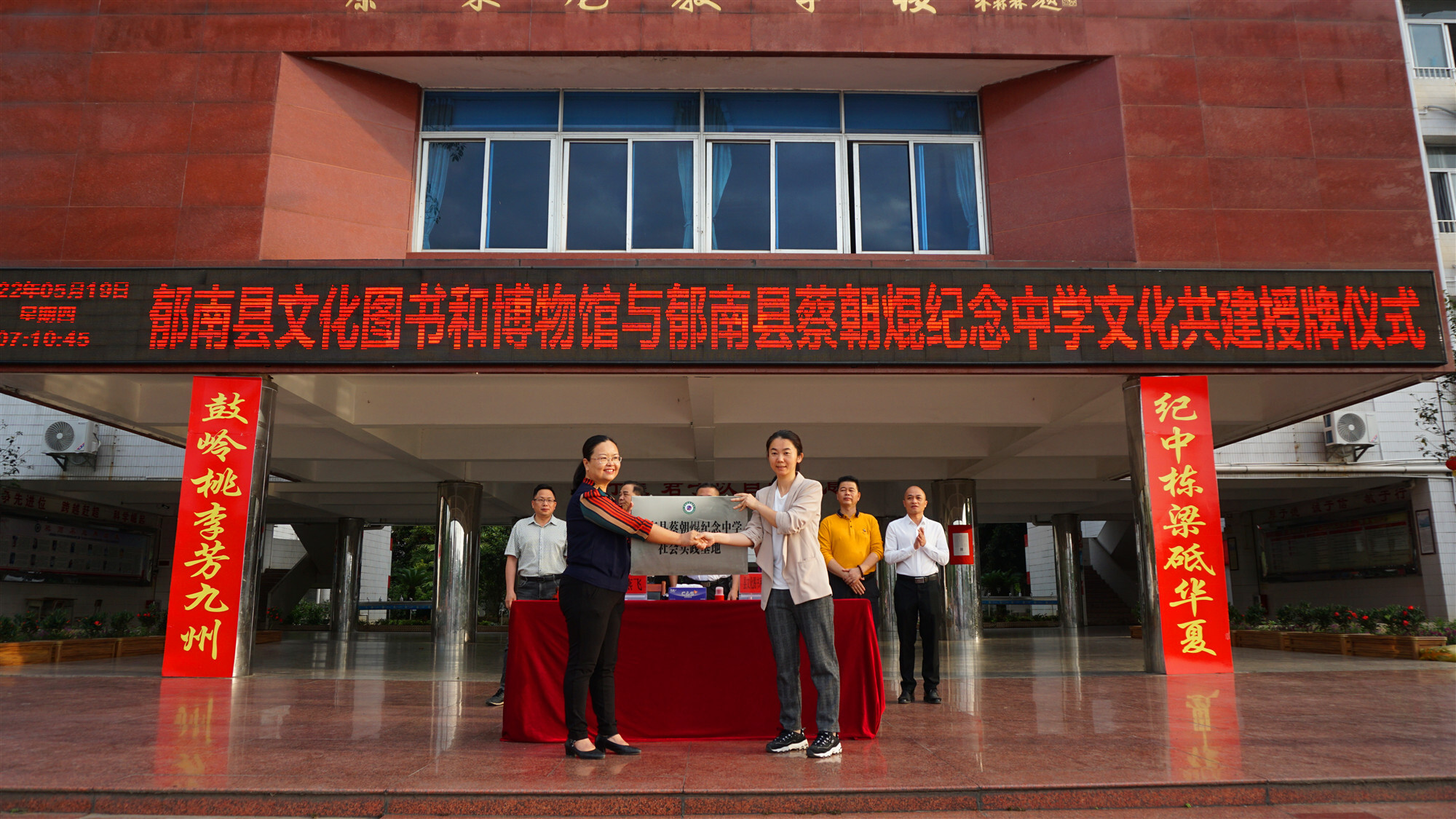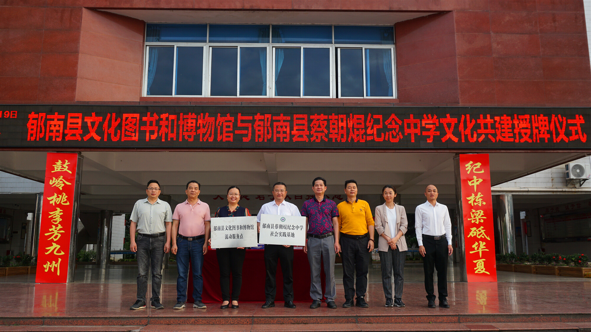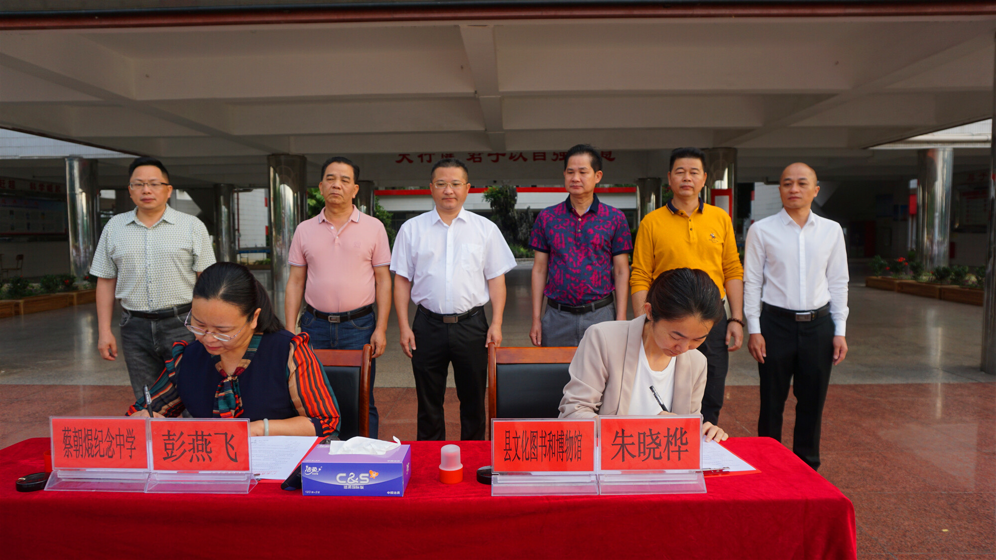 為了更好地整合利用資源,加強文化、教育資源共建共享,郁南縣文化圖書和博物館與郁南縣蔡朝焜紀念中學達成結對共建共識,于近日在縣蔡朝焜紀念中學舉行授牌簽約儀式。該縣文廣旅體局、縣文化圖書和博物館、縣蔡朝焜紀念中學主要負責人以及蔡朝焜紀念中學的全體行政領導、師生參加了儀式。縣文化圖書和博物館館長朱曉樺同志、縣蔡朝焜紀念中學黨總支書記、校長彭燕飛同志在授牌簽約儀式上分別致辭。
