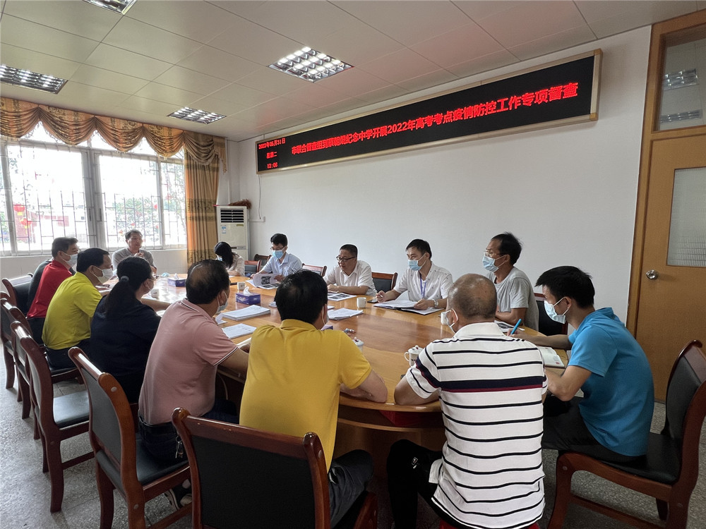 5月31日上午,中共云浮市委督查室謝高發(fā)副主任帶領(lǐng)市聯(lián)合督查組蒞臨蔡朝焜紀(jì)念中學(xué)開展2022年高考考點疫情防控工作專項督查,縣委機要局局長陳燈殿及縣委督查室、縣教育局等有關(guān)負(fù)責(zé)人陪同督查。 市聯(lián)合督查組一行來到蔡朝焜紀(jì)念中學(xué)考點,聽取了考點主考彭燕飛校長相關(guān)工作匯報,實地查看了標(biāo)準(zhǔn)化監(jiān)控設(shè)備及校園環(huán)境,認(rèn)真查閱了學(xué)校高考疫情防控應(yīng)急預(yù)案、高考考點疫情防控演練方案、高三師生晨午晚檢記錄、教室消毒記錄、師生核酸檢測情況等高考考點疫情防控資料。督查組對我校高考考點疫情防控的各項工作給予了充分肯定。督查組強調(diào),要切實做好高考考點疫情防控各項工作,從嚴(yán)從細(xì)從實落實高考各項措施。確保考試順利進行,做到健康高考,平安高考。 高考在即,我校將繼續(xù)立足高標(biāo)準(zhǔn),嚴(yán)要求,細(xì)化落實各項工作措施,認(rèn)真做好今年高考準(zhǔn)備工作,為2022年高考保駕護航!