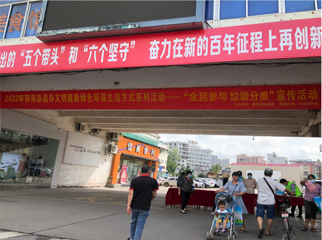 為深入貫徹落實習近平生態文明思想,營造全社會共同參與垃圾分類的良好氛圍,引導廣大群眾增強垃圾分類的緊迫感和自覺性,提高群眾知曉率和參與度,4月25日,郁南縣住建局開展2022年郁南縣倡導文明健康綠色環保生活方式系列活動--“全民參與 垃圾分類”宣傳活動。