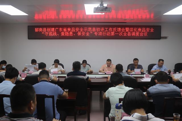 為全力做好郁南縣創建廣東省食品安全示范縣考核驗收工作,6月14日,郁南縣召開創建廣東省食品安全示范縣初評工作反饋會。縣人民政府分管領導、縣市場監管局主要負責同志、各鎮及縣食安委相關單位分管領導參加了會議。