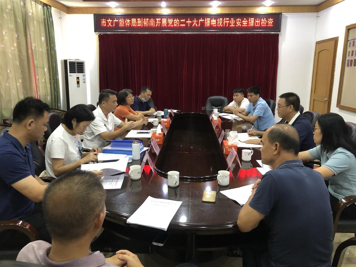 為確保廣播電視和網絡視聽播出安全、傳輸安全、網絡安全和設施安全以及進一步做好“灰廣播”和非法醫藥廣告集中整治工作,6月30日上午,云浮市文廣旅體局領導李醒培同志帶領廣電科、云浮廣播電視臺、廣電網絡云浮分公司等相關單位負責同志聯合郁南縣文廣旅體局到郁南縣融媒體中心開展迎接黨的二十大云浮市廣播電視行業安全播出大檢查。