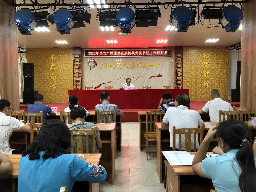 為深入學習貫徹習近平新時代中國特色社會主義思想、習近平總書記重要講話和重要指示精神,以實際行動學習宣傳貫徹省第十三次黨代會精神,引領文廣旅體系統全體黨員干部增強忠誠擁護“兩個確立”、堅決做到“兩個維護”的政治自覺、思想自覺和行動自覺,凝聚奮進新征程強大精神力量,推動我縣文化事業和文化產業穩步前進,6月30日上午,縣文廣旅體局直屬機關黨委緊扣“喜迎二十大、奮進新征程、建功新時代”主題,結合學習貫徹省第十三次黨代會精神,組織開展了“書記講堂”專題黨課活動,縣文廣旅體局直屬機關黨委書記李永強以“牢記初心、踐行使命”為題,為全體文廣旅體系統黨員干部主講專題黨課。