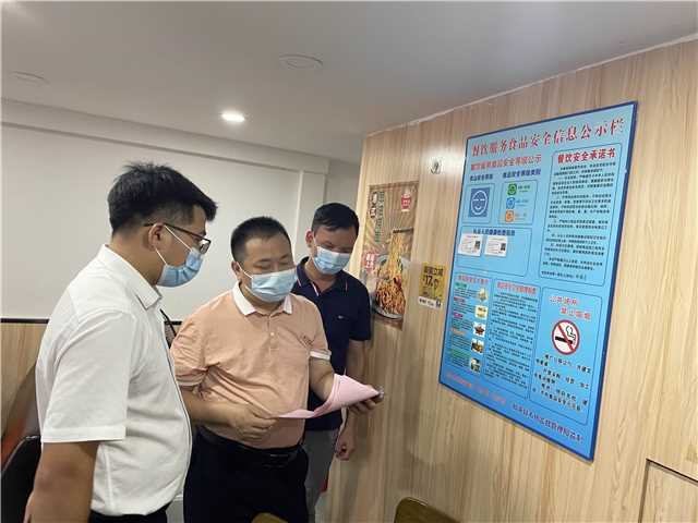 檢查組一行隨機抽查連灘鎮的3家食品生產經營主體,通過實地考察、查看臺賬和現場詢問等方式,檢查經營主體食品安全責任落實情況,并將發現的問題及時反饋給鎮主要領導及監管人員。