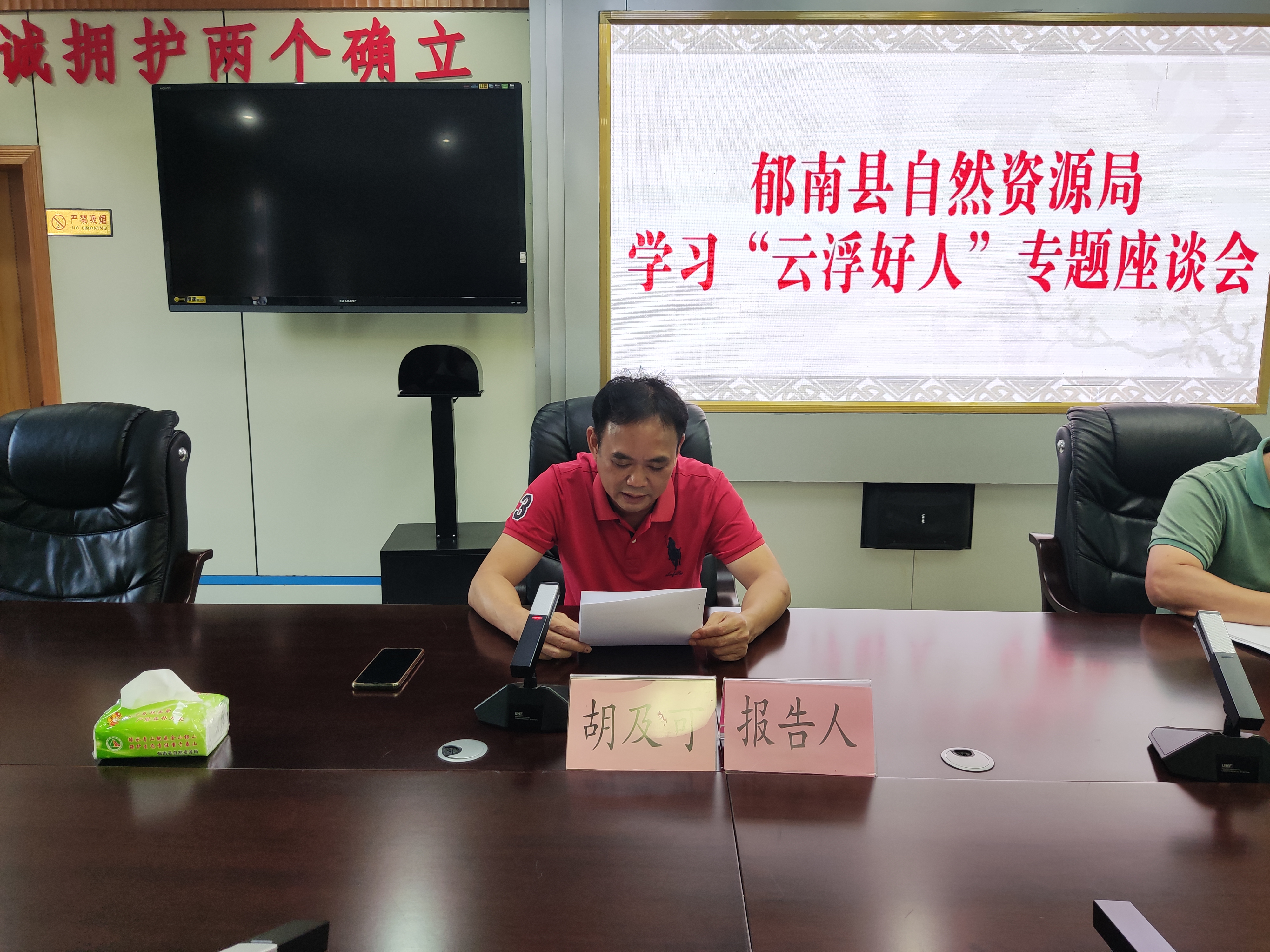 為了深入學習宣傳貫徹習近平總書記給“中國好人”李培生胡曉春重要回信精神,共同學習、研究、領悟總書記重要回信精神的豐富內涵,9月8日上午,郁南縣自然資源局組織干部職工召開座談會專題學習“云浮好人”事跡,由“云浮好人”胡及可同志在會上作報告。