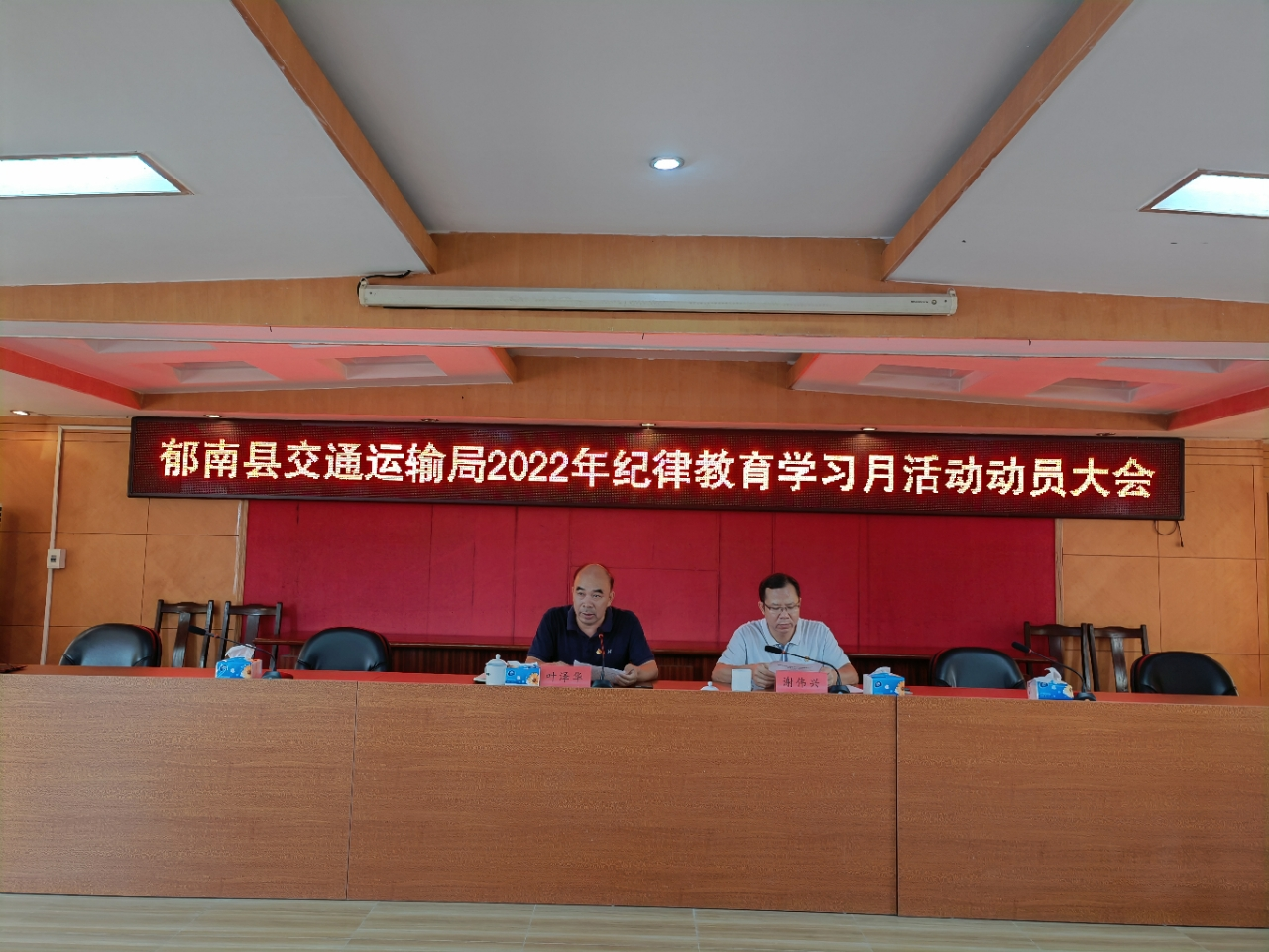 為貫徹落實縣委關于開展紀律教育學習月活動的部署和工作要求,加強黨員隊伍的思想道德建設,增強黨員干部拒腐防變和抵御風險的能力,2022年9月14日上午,縣交通運輸局直屬機關黨委圍繞“勇于自我革命,永葆先進純潔”主題,開展紀律教育學習月活動動員大會。會議由縣交通運輸局黨委書記、局長葉澤華同志主持,縣交通運輸局全體干部職工、交通運輸系統黨員參加會議。