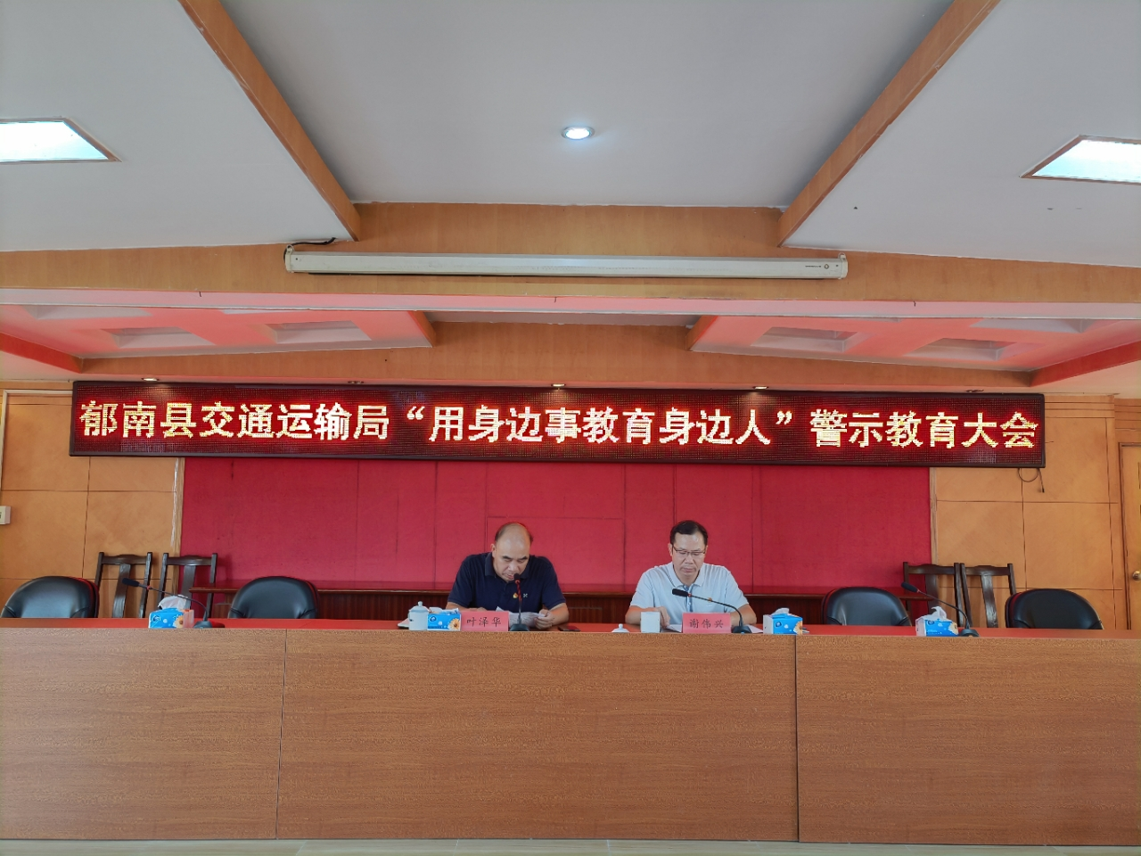 本次會議分三個議程進行,一是宣讀《郁南縣交通運輸局紀律教育學習月活動方案》并作有關工作部署安排;二是開展“用身邊事教育身邊人”警示教育,通報近期市、縣違紀典型案例并作剖析警醒;三是集中觀看廉政微電影《橋》(家風篇)。