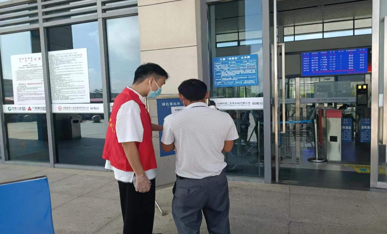 活動(dòng)瞄準(zhǔn)國慶假期返程重要時(shí)間節(jié)點(diǎn),在南廣高鐵郁南站組織開展,現(xiàn)場(chǎng)圍繞“文明交通 綠色出行”主題,通過安排志愿服務(wù)人員在高鐵站出入口和站前廣場(chǎng)站崗協(xié)助疫情防控“兩碼”核驗(yàn)、體溫檢測(cè),提供出行指引服務(wù)以及派發(fā)《文明交通 綠色出行倡議書》宣傳引導(dǎo)乘客優(yōu)先選擇公共交通工具綠色出行、文明有序乘車、愛護(hù)公共衛(wèi)生等。