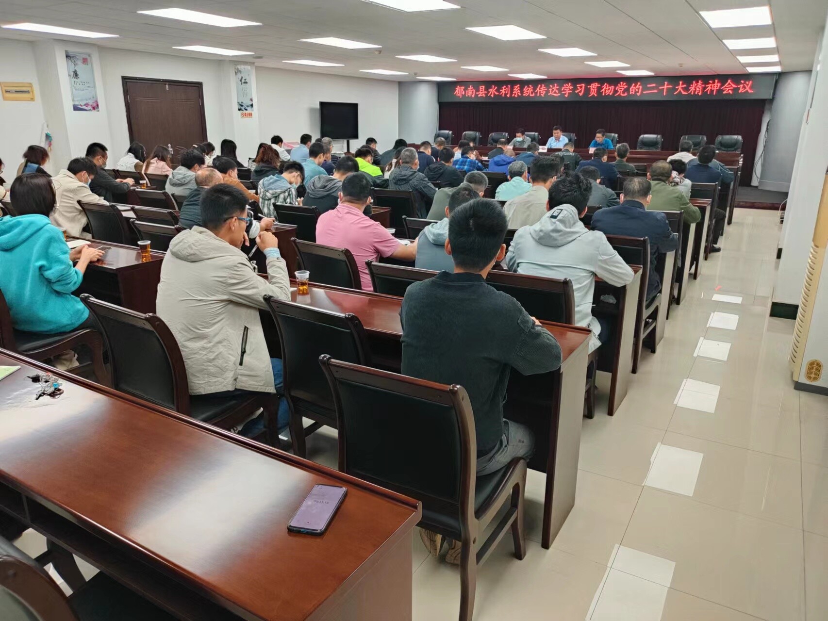11月7日上午,郁南縣水務局召開郁南縣水利系統傳達學習貫徹黨的二十大精神會議,傳達學習貫徹黨的二十大精神,并對學習宣傳貫徹工作進行動員部署,強調全縣水利系統干部職工要把學習宣傳貫徹黨的二十大精神作為當前和今后一個時期首要政治任務,全力推動黨的二十大精神在水利系統落地落實。