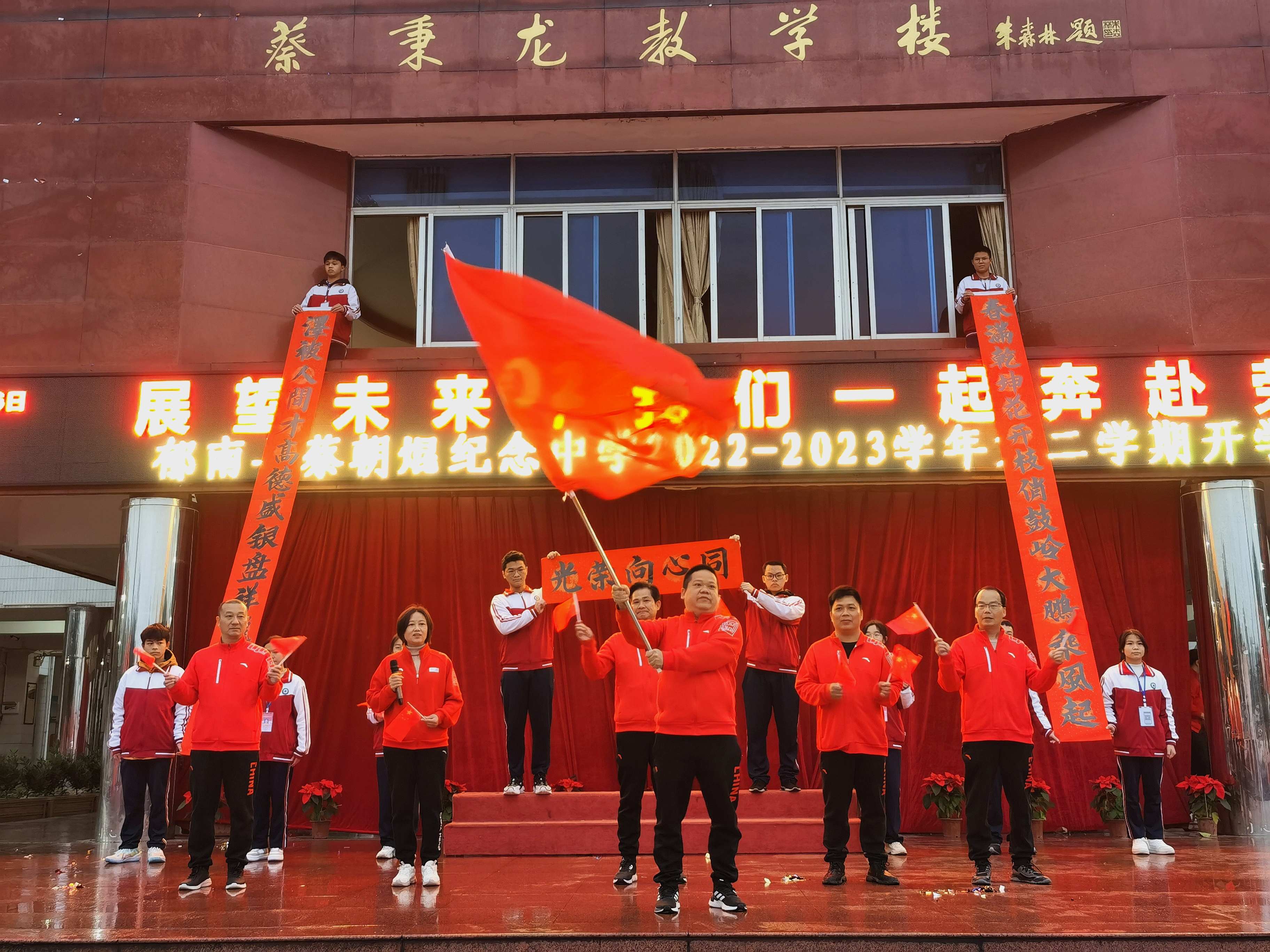 陽春布德澤,萬物生光輝。為了迎接新學期的到來,鼓舞莘莘學子的奮斗士氣,郁南縣蔡朝焜紀念中學于2023年2月6日清晨在學校廣場舉行了2022-2023學年第二學期開學典禮。全體師生參加典禮,共同迎來灑滿陽光、播種希望的新學期。