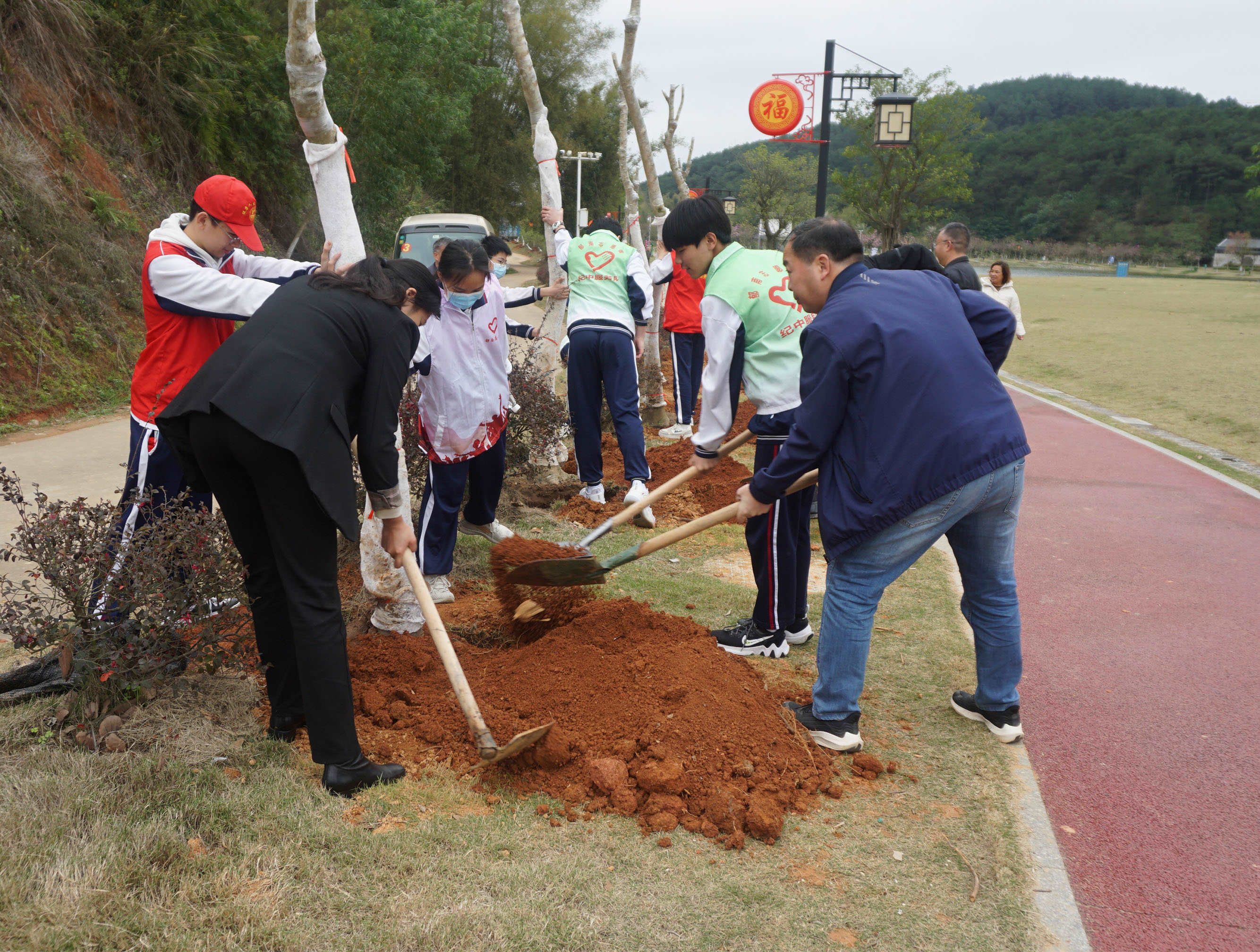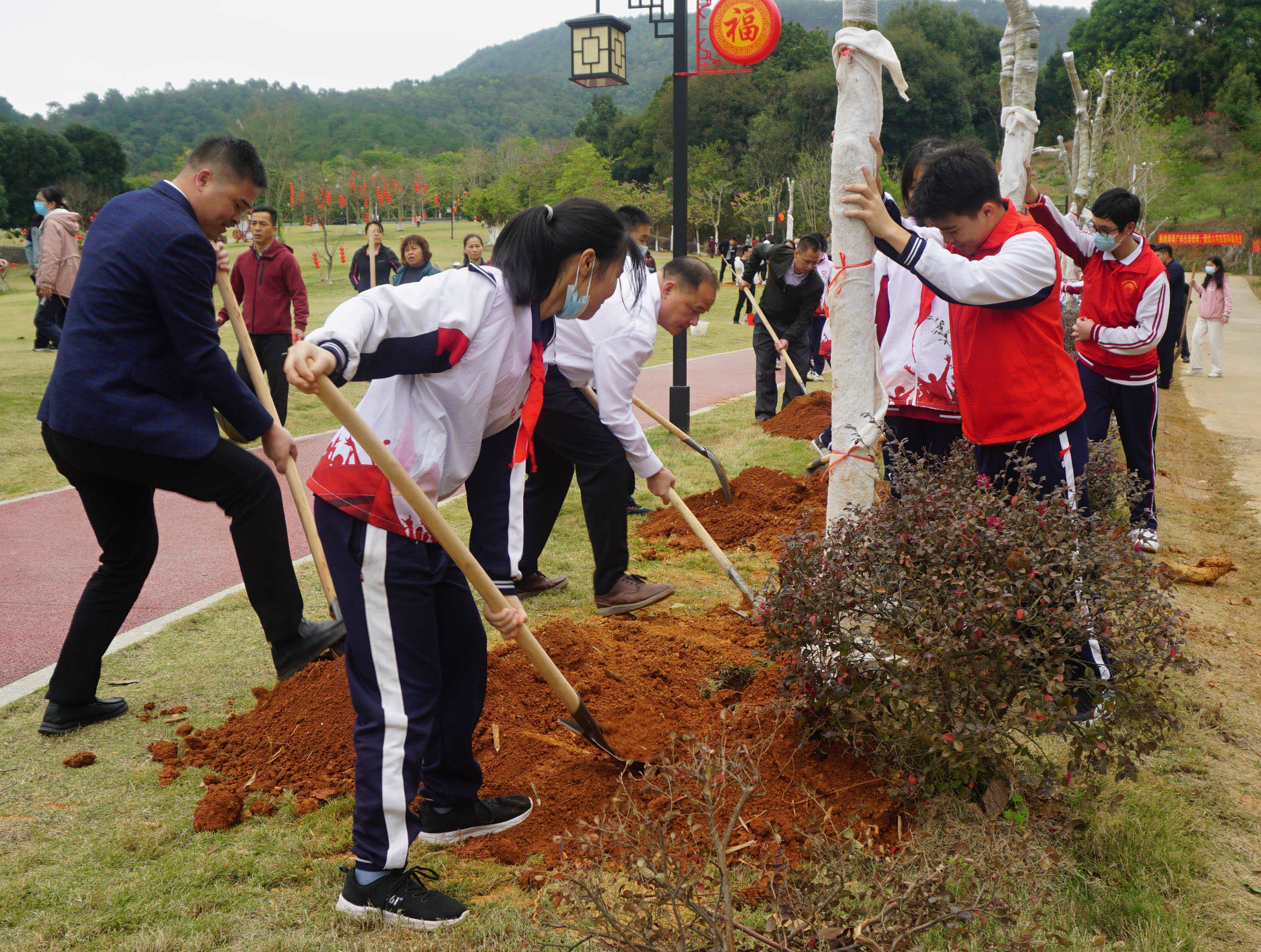 春風催新綠,植樹正當時。為全面貫徹黨的二十大精神,扎實推進“綠美廣東,生態建設”理念,加強學校生態文明教育,積極參與植樹造林和生態保護,2月13日下午,蔡朝焜紀念中學組織七、八年級師生到大王山森林公園開展“青年林”義務植樹活動。師生共植“青年”樹,為綠色郁南增添了一道亮麗的風景。 植樹現場,雖然氣溫驟降,寒風凜冽,但師生們個個熱情高漲、干勁十足,我校師生徒步來到大王山植樹點后便分工協作,有條不紊地進行挖坑、植苗、培土、澆水…… 青山綠水下,師生們擼起袖子,密切配合,干得熱火朝天。一顆顆希望的樹苗被種下,寄托了學校的殷殷希望,希望紀中學子能如綠苗般腳踏實地,健康成長,迎風挺立,不懼困難。 十年樹木,百年樹人。此次義務植樹活動,不僅能植樹護綠優化生態環境,也在師生心間播下了希望的種子。師生凝心聚力,共建優質美麗郁南,共育創新型高質量人才,奮力推進學校教育高質量發展。