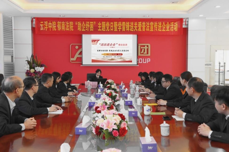 正值“三八”國際婦女節、女法官國際日和學雷鋒活動月之際,為切實提高廣大婦女維權意識和法治觀念,持續優化法治化營商環境,3月6日,云浮中院、郁南法院積極延伸司法職能,走進郁南縣永光電池有限公司開展“助企紓困”主題黨日暨學雷鋒送關愛普法宣傳進企業活動。