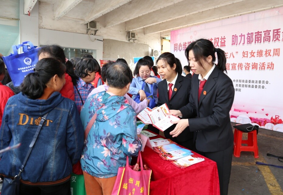 在“三八”國際婦女節到來之際,為進一步強化婦女維權意識,營造保護婦女兒童權益的良好社會氛圍,3月8日,郁南法院聯合縣紀委監委、縣委政法委、縣婦聯、縣檢察院等單位在縣文化廣場開展“三八”婦女維權周普法宣傳活動。
